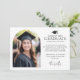 Photo announcement card featuring your photo inside an elegant arch shaped frame and a graduation cap logo with the text "graduate" and class of your year. Add a custom message below.
