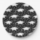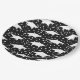 "Planning a graduation party? Elevate the celebration with these elegant paper plates featuring white graduation cap and confetti on a sleek black background. Perfect for adding flair to your party decor and tableware!"