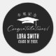 Graduation Cap Navy Black Minimalist Typography Classic Round Sticker