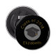 A bottle openerwhich says Class of 20xx and the graduate's name, written in colour gold. Designed with a black graduation cap surrounded by a semi-transparent white circle. Black background with gold lettering is simple yet stylish.