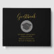 A guestbook which says Class of 20xx and the graduate's name and school, written in a gold colour. Designed with a black graduation cap surrounded by a semi-transparent white circle. Black background with gold lettering is simple yet stylish.