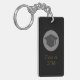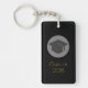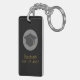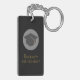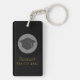 A keychain which says: Class of 20xx. The back can be personalised with your name and phone number or other text. Designed with a black graduation cap surrounded by a semi-transparent white circle. Black background with gold lettering is simple yet stylish.