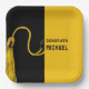 Creative graduation party congrats design featuring a classic black and gold graduation cap on a yellow background. Edit text to add senior class grad's name.