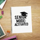 A graduation cap and the quote: Senior Mode: Activated. You can add your school colour in the design tool.