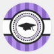 Graduation Caps Stripes Party Favour Sticker (Purple / White / Black)...This classic Graduation sticker is the perfect addition to the graduation party invitations inviting friends and family to a graduation party. It's also a great party favour sticker. Use it on goodie favour bags. Put them on toothpicks and put them in graduation cupcakes. Whether you're celebrating a Kindergarten (Kindergarden) Graduation, High School Graduation, Law School (JD) Graduation, Med (Medical / MD) School Graduation, Business School Graduation (MBA), Nursing School (RN) Graduation, Dental School (DDS) Graduation, College Graduation, Pharmacy School Graduation, Veterinary (Veterinarian) School Graduation, or Grad School Graduation (PhD / Masters Degree), this sticker is perfect to mark the occasion. The little graduation cap is too cute. See WindyCityStationery.com for our complete line of "Graduation Cap Stripes" postage stamps and matching "Stripes" invitations and announcements as well as our lines of invitations, save the dates, postage stamps, note cards, and more for every occasion.