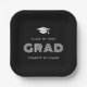 Graduation paper plates featuring a graduate cap and the graduate's name and year above and below the text "grad" in a fun, modern font.