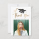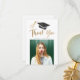 Personalise this stylish and modern graduation thank you card with your name and photo. Featuring a gradation cap with gold tassel and modern brush script that says "Thank you" in gold.