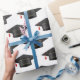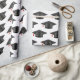Graduation wrapping paper with black faux satin cap with Tassle. Perfect for any graduation. Traditional graduation cap design.