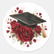 Graduation Cap with Red Roses Celebration Design Classic Round Sticker