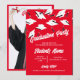 If your school colours are red and white, this graduation invitation is singing your school song. A white and red customisable photo invitation for a graduation party for him or her. Personalise the front of these graduation invitations with the graduate's name and your party information. Customise the back of the graduation invitation with the graduation year and school. white graduation caps and mortarboards tossed in the air on a red background. Fun graduation party invitation for high school or college graduations.