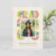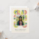 Retro-style, yet modern, graduation announcement photo card invitation that features the word "GRAD" designed with geometric shapes in various colors that form a border around the photo of the graduate. Retro colors—green, dusty pink, brown—add to the card's retro style.