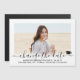 If unexpected circumstances have caused a postponement or cancellation of your graduation party, inform family and friends of the change in plans with these simple modern minimalist save the new date magnetic invitations. Text is simple to customise to include graduate name, class year, school, or other event details. (IMAGE PLACEMENT TIP: An easy way to centre a photo exactly how you want is to crop it before uploading to the Zazzle website.) Design features handwritten style script calligraphy, stylish vintage art deco inspired typography, and 1 photo of your choice, such as a senior picture or image from the commencement ceremony. This elegant graduation announcement card is a trendy and chic way to begin your special day celebration and to invite guests to resave the new rescheduled date. Congratulations to the graduate!