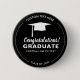 Graduation button in your school colour featuring a white grad cap and space for 4 lines of custom text. Add your school name, grad name, congratulations, or other text. Easily change the background colour to match your school colour - just click on customise and scroll down to the colour picker. Perfect for graduation parties, ceremonies, etc.