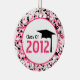 A graduation ornament featuring a pink & Black paint splatter background. Design inside circle outlined in pink reads "Class of 2012" and features a graduation cap.