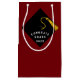 Graduation gift bag featuring creative black and gold cap design and congratulations line on a maroon background. To customise, edit text to add name of your favourite senior class grad.