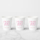 Graduation Class of 2025 pink and white paper cup with a minimalist design. With pink typography customisable lettering, you can add your own text. A simple party addition for that special party for your grad.