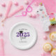 This personalised paper plate is perfect for any graduation party celebration. The purple and black text reads: Class of 2025 Grad. A black mortarboard sits on top of the zero in the year.