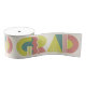 Retro-style graduation gift wrapping ribbon that features the word "GRAD" designed with geometric shapes in various colors. Retro colors—pink, and green—add to the retro style. Perfect for class of 2026 graduation day gifts.