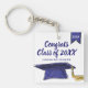 Graduation Class of 20XX Blue Grad Cap Custom Key Ring