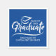 Celebrate your grad or entire graduating class with these custom paper napkins. Design features the word "Graduate" in a modern white brush script font and white graduation cap graphic set against a blue background. Add the class of year and custom text below to create a truly one of a kind graduation party napkin. Please email us at colorfulgalshop@gmail.com if you'd like help changing the background colour to match your school colours.