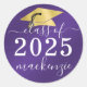 Graduation Class Of Metallic Script Purple Classic Round Sticker