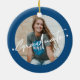 Simple elegant classic blue and white typography script and your custom photo making a stylish elegant graduation keepsake Christmas tree ornament. ++++++++++ Easy to personalise with your name, class, school and monogram / name initials and picture! ++++++++++++++ Please NOTE that the colours of text and background can be changed after selecting EDIT USING DESIGN TOOL in PERSONALIZE menu option.