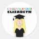 Illustration of female graduate with colourful text reading "Congratulations!"