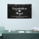 Silver confetti and editable title CONGRATULATIONS (graduate's name) in a handwritten brush script font in white against an editable black background that you can change to coordinate with school or party theme colours by clicking on the CUSTOMIZE FURTHER tab. Contact the designer if you'd like this design modified, on another product or desire complementary items for your event.