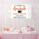 Add a personalised touch to college or high school graduation party decorations with this custom orange, white and black banner. All text is simple to customise to include name, class year, school, degree, honours, inspirational quote, or other text of your choice. Design features a white background, black mortar board cap, festive confetti dots, stylish modern typography, and handwritten style script calligraphy. This party sign is an elegant way to celebrate the special day. Congratulations to the graduate!