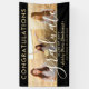 Add an elegant personalised touch to college or high school graduation party decorations with a custom 3 photo collage banner. The pictures and all wording on this template are simple to personalise, and colours are easy to change with the Zazzle design tool. The black and gold design features a faux foil mortar board cap, trendy handwritten script calligraphy, chic modern minimalist typography, and three photos of your choice, such as senior pictures or images from the commencement ceremony. Please note that gold is printed colour, not metallic foil. This large graduation party sign can be hung on a wall to welcome guests to the celebration or used as a fun and stylish photo booth backdrop. Congratulations to the graduate!
