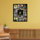 Easily create a graduation photo memories poster print utilising this easy-to-upload photo collage template with 42 square pictures of your graduate through the years to display at your graduation party or as a commemorative keepsake. The editable black and gold design features a faux metallic gold graduation cap, the title CONGRATULATIONS NAME and class year. CHANGES: The black background colour can be changed to a school colour or a coordinating party theme colour and/or change the text colour, font style, size and placement in EDIT. OPTIONS: The sample is shown in a 24x30" size on Value Paper (Matte); other standard and custom print sizes, paper quality and framing, Digital Download file for local printing or transferring the design to a foam board, banner, tapestry or other product options are available on the ordering page. RESIZING TIP: Choose Custom Size for even borders by changing the height and width proportionately AFTER clicking the UNLOCK icon (looks like a chain link). ASSISTANCE: For help with design modification or personalisation, resizing, transferring the design to another product or if you would like coordinating items, contact the designer BEFORE ORDERING via the Zazzle Chat MESSAGE tab or email makeitaboutyoustore@gmail.com.