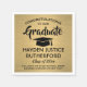 Add an elegant personalised touch to college or high school graduation party decorations with these custom black and gold paper napkins. All text is simple to customise. Design features a gold faux brushed stainless steel background, black mortar board cap, stylish modern typography, and handwritten style script calligraphy. Please note that gold is printed colour, not metallic foil. Congratulations to the graduate!