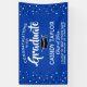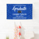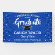 Add a personalised touch to college or high school graduation party decorations with this custom royal blue, white and black banner. All text is simple to customise to include name, class year, school, degree, honours, inspirational quote, or other text of your choice. Design features a blue background, black mortar board cap, festive confetti dots, stylish modern typography, and handwritten style script calligraphy. This party sign is an elegant way to celebrate the special day. Congratulations to the graduate!