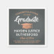 Add an elegant personalised touch to college or high school graduation party decorations with custom grey, white and copper paper napkins. All text is simple to customise. Design features a grey ombre background, faux foil mortar board cap, stylish modern typography, and handwritten style script calligraphy. Please note that copper is printed terracotta colour, not metallic foil. Congratulations to the graduate!