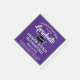 Add an elegant personalised touch to college or high school graduation party decorations with these custom purple and white paper napkins. All text is simple to customise. Design features a purple background, black mortar board cap, stylish modern typography, and handwritten style script calligraphy. Congratulations to the graduate!