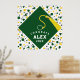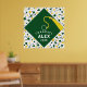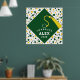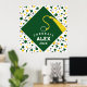 Creative graduation congrats poster for grad party featuring green cap with a gold tassel on confetti background. To personalise, edit text add his or her name and senior class year.