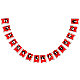 Graduation party congrats banner featuring black and gold graduation cap on red background.