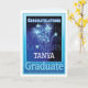 Making it to graduation is like a roller coaster ride. Full of ups and downs and the occasional scream! This card proudly honours that ride. Showcasing the graduate's name and turning this graduation card into a unique keepsake. Because, let's face it, they've survived exams, all-nighters, and likely more stress than a cat at a dog park. This festive card reads, "Congratulations, Graduate," and features an area to personalise the graduate's name. Blue stars and fireworks will surround their name. Making the graduate feel like a star. The inside's framed in light blue and also customisable. You can keep or change the greeting. Add the graduates' and the sender's names for a personal touch. Send this graduation card adorned with fireworks to celebrate their ride. © TANITU by Tanya Lumere