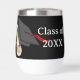 Black and white graduation party, nice graduation party black and white wine glass for a celebration for a graduate from a high school, college, or university with class of 20xx in white on black with graduation cap and graduate's name.