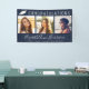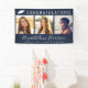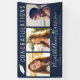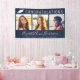 Elegant dark blue graduation party welcome banner and photo backdrop featuring "Congratulations" in large white typography and an illustration of a white graduation cap on top, a three photo collage, her name in a trendy stylish white script, and her class year and school name in simple modern white typography. The colours of the background and typography can be edited to your school colours by editing in the design tool.
