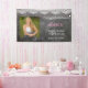 Graduation banner with your favourite photo. Fun chalkboard with chalk font, white lace and pink confetti. Personalise with your graduate's name, school, and year of graduation.