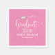 This design features a graduation graduate grad party napkin, with simple elegant calligraphy script, a modern mortarboard mortar board cap, a trendy stylish calligraphy script font, a minimalist minimal simple typography, for a graduation party cocktail paper napkin, a grad party drink bar napkin, a fancy filigree swirly font text, a graduation grad party parties supplies, a hot pink blush color