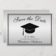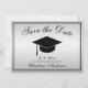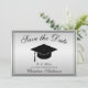 Invite your family and friends to your high school or college graduation celebration with this elegant save the date invitation flat card. This design template features a trendy black script typography design accented by a black grad cap on a faux silver background. Personalise your name and date on the front and on the back customise with more details of your party. Congrats on your graduation! Designed by artist ©Susan Coffey.