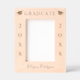 Graduation Engraved Frames with graduation caps and the word Graduate on the top and the name of your grad in script lettering on the bottom. Easy to personalise graduation gift. This beautiful etched wood photo frame for grads has a laser-engraved design. With a fold-out stand, it easily props up on any desk, bookshelf, or table. A lovely gift idea for graduating friends and family of all ages.