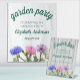 Garden party graduation with pink and white roses as well as blue and purple wildflowers.