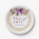 Beautiful personalised purple sparkle watercolor flowers and faux gold glitter confetti frame on white background Graduation party paper plates. If you need any assistance customising your product please contact me through my store - via this page - and I will be happy to help. I have used artwork from: www.CreateTheCut.com. I have matching products in my store.