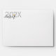Graduation Invitation and announcement mailing envelopes with printed return address, personalised "class of" year on the outside front, and black and white stripe on the back flap and a gold graduation cap pattern printed on the inside.
