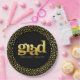 Be proud, rejoice and showcase this milestone of your favourite grad! Celebrate with this bold, stunning, simple, modern, custom paper plate. Bold, graphic, faux gold foil typography and dots overlay a black background. Personalise with your grad’s name and class year. Your choice of 2 sizes: 7” or 9”. Matching announcements, address labels, cap toppers, fans, napkins and other graduation goodies are also available in this trendy and modern collection. Guaranteed to add stylish fun to their special party!