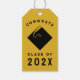 Graduation 2025 gift tags for the grad featuring black cap on gold background. Edit text to add senior class year.