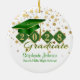 This keepsake ornament features green and gold cap and tassel on diamond shields with your graduating year, name and school on gold confetti background. Makes a great gift this holiday season. Easy to personalise with custom options.
